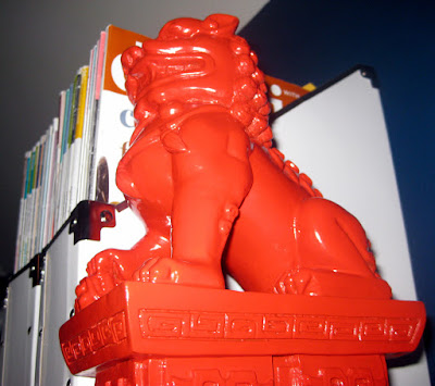 Alas though, Dave wasn't as ardent a fan. But back to the task at hand....My plan is to repaint the sideboard in a high-gloss red-orange, something along the lines of this foo dog: