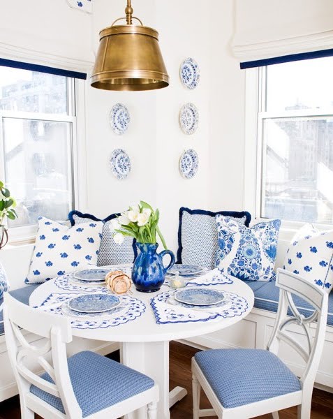 Even if you only have a small balcony, you can still create a stunning outdoor space with the addition of a narrow (but plush) window bench, small table and a few small stools that can double as extra seating in a pinch. Even outdoors, I love a blue and white palette, which when done with an inky blue feels so wonderfully Greek to me. Even though this balcony overlooks South Beach, it feels like it would be even more at home overlooking the Mediterranean...and thus the transportive power of design, yes?